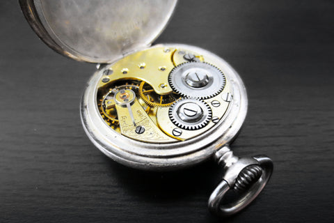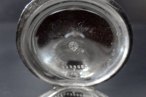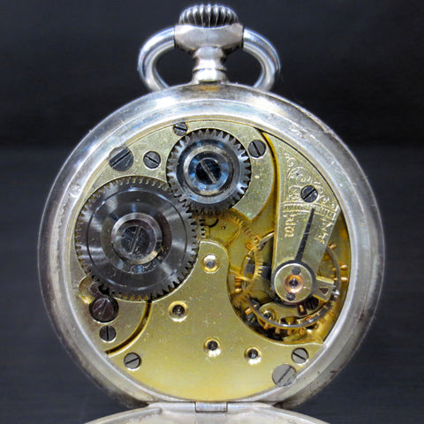 Signed Omega and dated 1902. Serviced, keeps accurate time, excellent autonomy. Solid silver .800, Omega and swan hallmarks on dial and case. 35mm diameter double-back case, arabic numerals, both minutes and seconds on a white porcelain dial. Sub-seconds dial, gold hands. Both case backs are marked with matching serial 3433001 which confirms 1902 to 1907 production date. The first case back is also stamped with the Omega emblem. The swan (cygne) hallmark stamped on both case backs and case side confirms watch is solid silver .800. The swan hallmark indicates watch was imported from Switzerland to France. The second case back is discreetly engraved with name Paul Maux-Montpellier, a French auctioneer. From a private collector in Montreal.