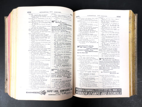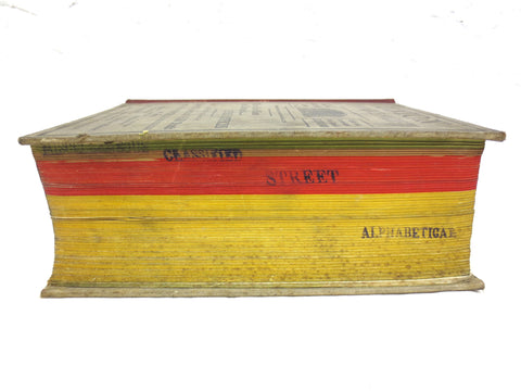 Complete, rare and historical Montreal directory. All pages in great condition, sturdy binding. Back cover has a burned part which is ironic since this edition was sponsored by the Union Assurance Society. Signed Lovell and dated 1905-1906. Classified section is green, street directory is red and alphabetical is yellow. No water stains. Measures 6.75 X 9.25 inches and has 1645 pages.