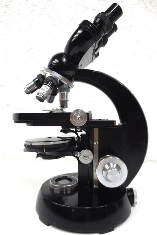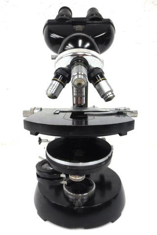 Excellent condition, very clean, functional. 7 accessories included, no box. Vintage bi-ocular microscope model 4349008 by Carl Zeiss Germany. Includes: