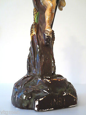 - Round space on base for holy water, red blood on hands, forehead, torso and knees.