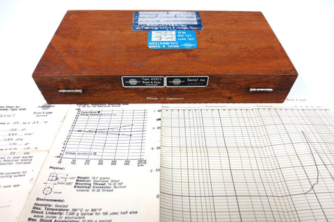 Working Piezoelectric Accelerometer signed Brüel & Kjaer, made in Denmark in the 1960's. Type 4339S, serial 234571. Designed for precision vibration analysis. Excellent condition, very clean. Original set, incomplete, includes the following accessories: