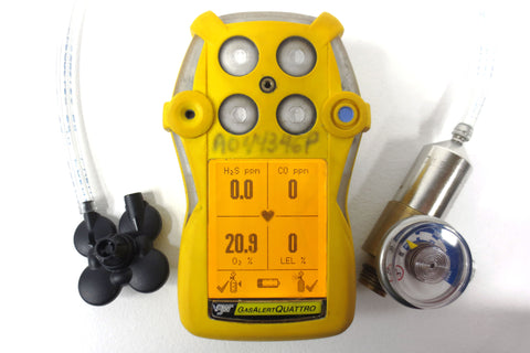 BW Gas Alert Quattro 4 Digital Gas Detector Monitor Set, 2 Batteries, Aspirator