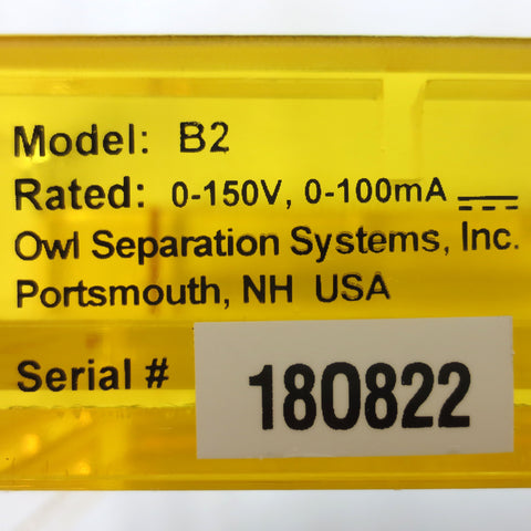 Tested, working, very clean. Health Canada surplus. Laboratory horizontal gel electrophoresis system model EasyCast B2 by Owl Separations Systems, serial 180822, made in U.S.A. Includes: