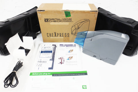 New, open box, ready to use. Complete with its original box, instructions, warranty, power supply and cable. Compact scanner for checks model CheXpress CX30 152001-01 by Digital Check. Automatic feeder, scans front and back of checks and MICR code line. Scans up to 30 documents/minute.