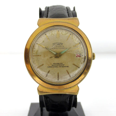 Vintage 1940's Technos 30 Jewels Super Automatic Swiss Watch, Fancy Lugs, Date