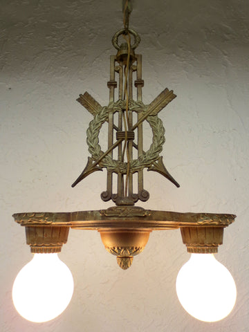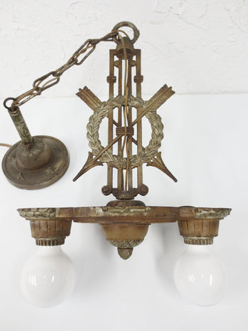 Antique 1920s Markel Art Deco 2 Lights Slip Shade Chandelier 13" Ceiling Fixture