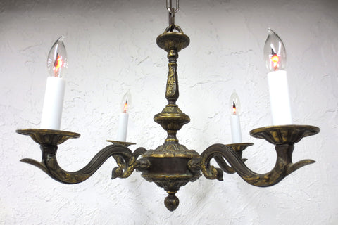 Antique Ornate Brass Chandelier 14X14" from a Victorian Home in Montreal Quebec