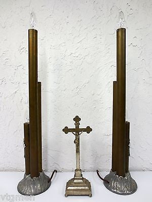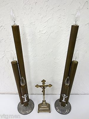 Antique Vintage Church Altar Lights Chandeliers, 29" Brass Gothic Candelabras