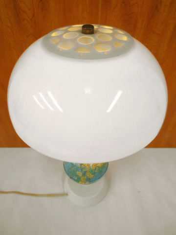 Vintage Mid Century Table Desk Lamp 16" Tall with Metal Earth Globe and Base, White Plastic Dome, Futuristic Design