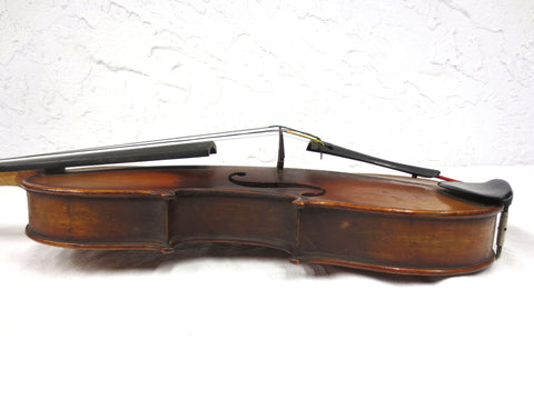 All original Vareni violin, excellent condition, rich and deep sound. Original tags inside marked "Pietro Vareni Neapoli Anno 1910, Made in France for Williams, Toronto". Includes a high quality silver mounted bow, signature unreadable excepts for "XM". Bow measures 29" long and weighs 29 grams. Original case with three bridges and two mutes. Sound post is intact and the violin's contours show no gaps. Violon stays in tune and has been tested by a professional musician. Violin measures 23.5 inches long and 9.25 at the widest. Violin will be professionally shipped and fully insured.