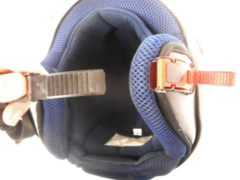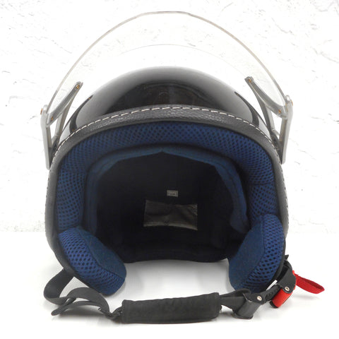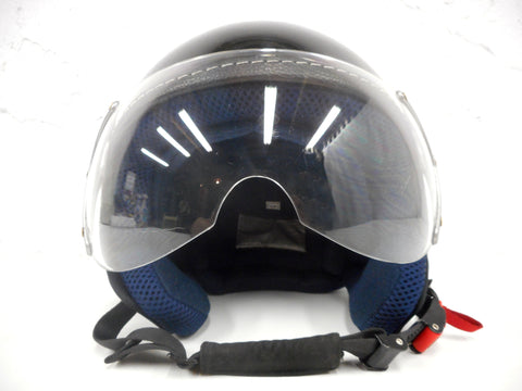 Excellent condition, very clean, stylish. Black and silver with a dark blue interior. All stickers intact. Marked ECER22-05, size Large 59-60 cm (7 3/8 - 7 1/2 inches hat size), 1080 to 1100 grams. Very lightly used, a few small scratches. For urban riding, motorcycles and scooters. Helmet has the same design as the "Urban Moto", no signature.