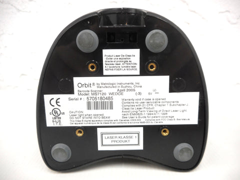 Excellent working condition, very clean, ready to use. Orbit Model MS7120 Wedge by Metrologic. No cables included. Acquired from a closing high-end store in Montreal. See our store for more high quality used equipment for your boutique or home office.
