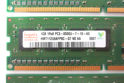 New, tested, guaranteed 30 days. 6 X 1GB memory RAM by Hynix. Specifications: DDR3, DIMM, 1066MHz, PC3-8500U-7-10-A0, HMT112U6AFP8C-G7.