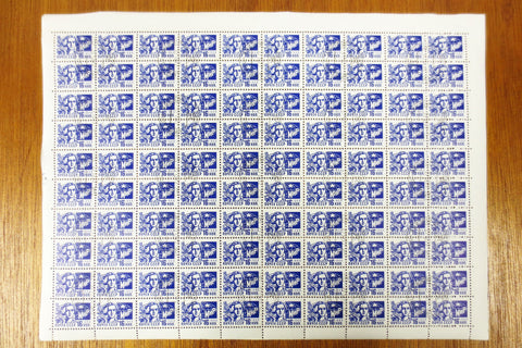 Complete Sheet of 100 stamps from Russia marked Noyta CCCP 16 KON 1966 with a woman and dove. Sheet is complete, never used, mint condition, no discoloration. Cancellation stamps are clean and centered. Stamps were issued 1966-11-24 and expired 1992-01-01. Noyta means postage. From a collector's estate. Sheet will be shipped in a non bendable and waterproof package.