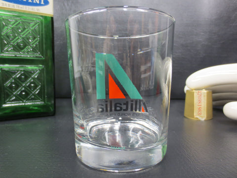 Vintage, only one available. Mint condition, perfect colors and letters, no chips. Measures 3.5 inches tall, 3 inches diameter. Marked with slogan "Italy's World Airline". Comfortable scotch or whisky glass. Last vintage airline glasses left in store (one of each): TWA, Pan Am, Scandinavian SAS, KLM and Sabena.