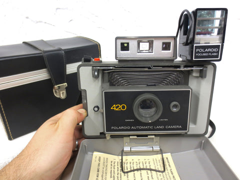 Vintage Automatic Polaroid Land Camera Model 420, Focused Flash, Polaroid Case