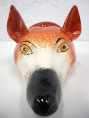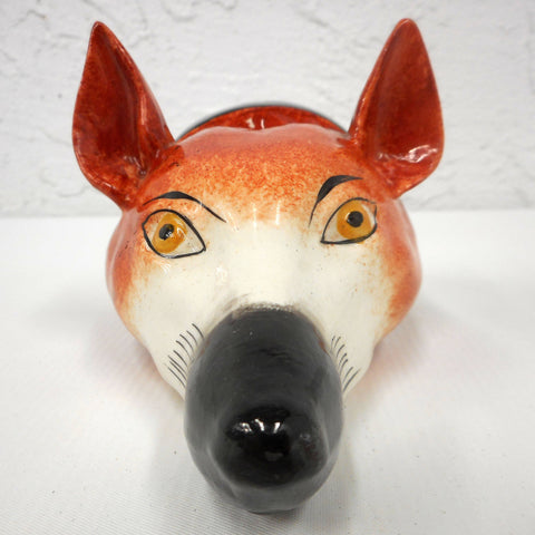 Rare, excellent condition, beautiful colors and porcelain. All intact, no chips, clean inside. This is a fox head mask stirrup cup stamped 224, possibly a Staffordshire from the end of the 19th century. Beautiful design similar to cups made in the late 18th century by Peter and Anne Bateman. It measures 5 inches long and has a 2 1/2 inches diameter. Stirrup cups were popular drinking vessels in the 18th et 19th centuries. They were presented to riders on horseback before they left or when they returned from their hunt. While riders feet were still in the stirrups of the saddle. These cups have no base because they were held in specially fitted trays by servants.
