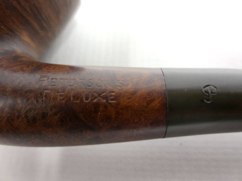 Excellent condition, professionally cleaned, ready to use. Bowl is signed "Peterson's DeLuxe, Made in the Republic of Ireland, 68". Original and clean stem marked "P" for Peterson's, no cracks. This beautiful and comfortable estate pipe measures 5 1/4 inches long, bowl is 2 in tall and has a 1 1/8 in diameter.