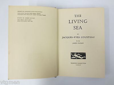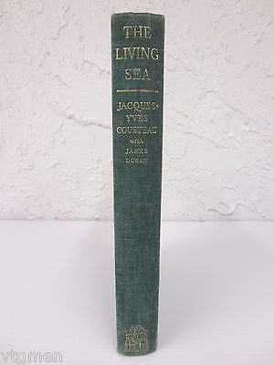 1963 Jacques Cousteau The Living Sea Book, Cousteau Calypso Boat, Illustrated