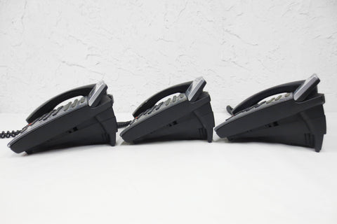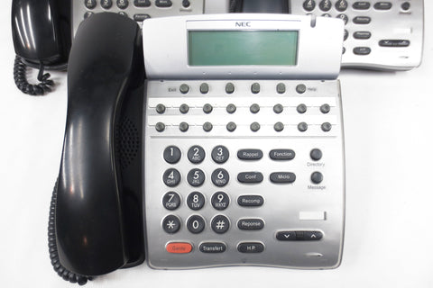 3 refurbished and tested NEC office telephones model DTH-16D-1, black and silver.