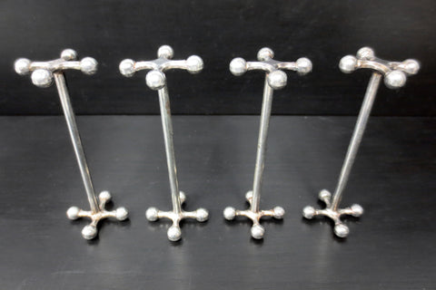 Matching set of 4, excellent condition, all signed Christofle, France. Luxury knife rests from the 1930's, "boule" (ball) pattern, 3 1/2" large. High quality silver plating, very clean, ready to use.