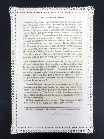 Antique Holy Card Lace Canivet by Letaille Boumard Paris, Waiting for Jesus