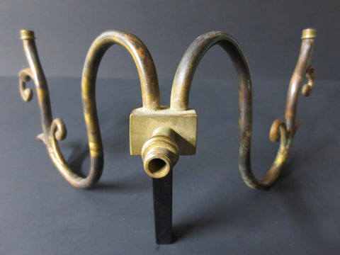 Original, stunning design, no broken parts. Beautiful patina. 10" wide, 6" deep. Was used to hold two gas or oil lamp during the Victorian era. Very solid construction. To be reused as a cool wall light sconce or for steampunk projects. The two ends fit standard sockets.