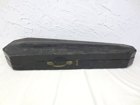Antique Violin Wood Case 30" Handmade, Black Casket Funeral, Brass, Folk Art