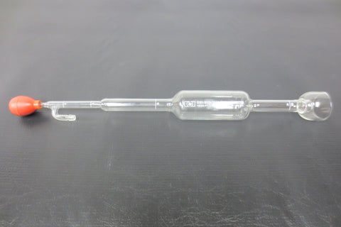 Very clean, no chips, original rubber bulb head included. 1-10-100 ml soap film flowmeter by Hewlett-Packard, model 0101-0113. All glass, measures 15 1/2 inches long.