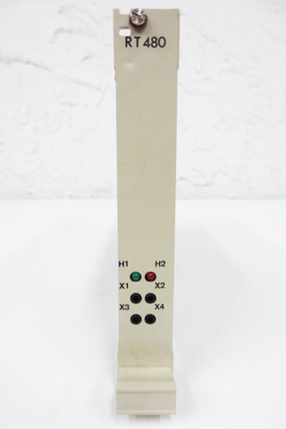 Like new, inspected and functional, no box. Surplus from an aluminum manufacturer. Control circuit board card by Brown Boveri / BBC Electronik, model RT480B, GNT7081401R0002 RT480 9021. Measures 7 1/2 X 5 1/8 inches.