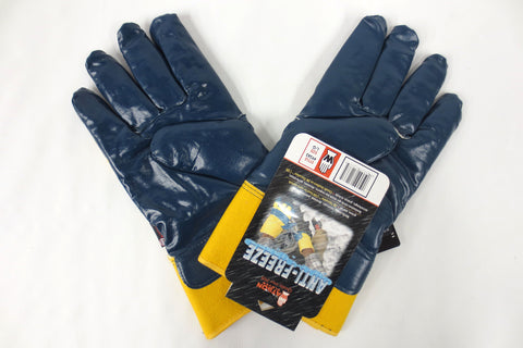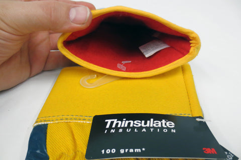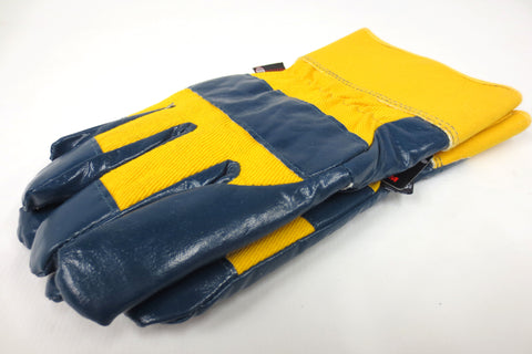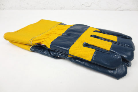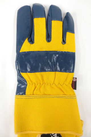 Brand new with tags, high quality, for heavy duty jobs. Size Large, signed Watson since 1918. Warm 3M Thinsulate C100 lining with protective Nitrile. Anti-Freeze, cut, abrasions, punctures, snags, grease and oil. Model #9343, yellow and dark blue. Ideal for work in extreme weather conditions with machinery, airplanes and chemicals.