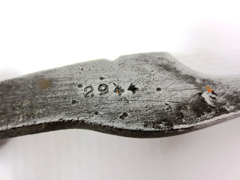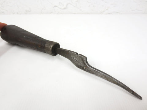 Rare antique carving and adjusting tool marked 2944. Early tool from the 1910-1920's. 10 inches long, sturdy, excellent condition. Original patina, not polished. Long and narrow, notch on top, curved shape with a small 4 mm carving head. Large and comfortable wood handle with a hole at the bottom to insert a holding string. Used by machinists and gunsmiths.
