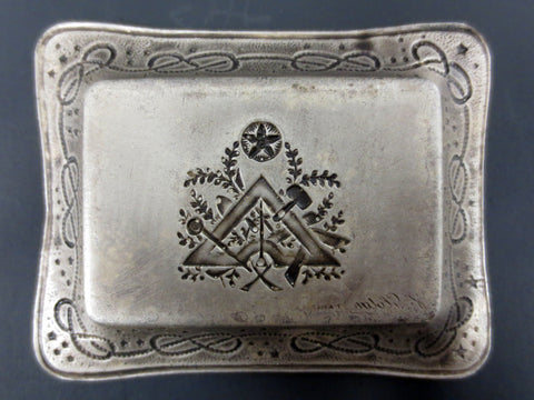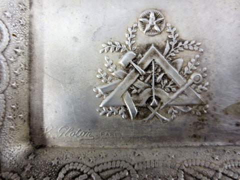 Excellent condition, very detailed engraving of a masonic lodge emblem. Plate is 800 silver, 3 1/2 X 2 5/8" small plate called a "Coupelle" in French. Signed L. Gloton Paris. No dents, no broken parts.