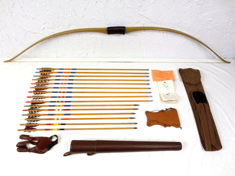 Vintage 1950 Ben Pearson Takedown Bow 64" Archery, 15 Arrows, Belt Pouch, Glove