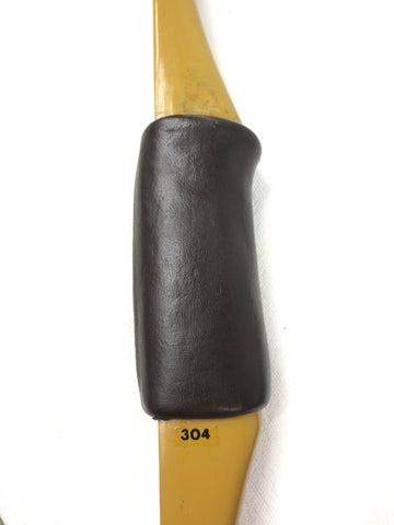Works perfectly, with original instructions and guarantee. Powerful fiberglass bow signed Ben Pearson No 304. Includes its original 15 wooden arrows, a belt pouch for arrows, a two pockets bow cover, a medium size archery glove and a leather arm protector. The string is still strong and tension is excellent. The leather grip end is marked 304 on the flat side and hand marked 40-29 inside. The other end is marked 40-28 and 72 B156.