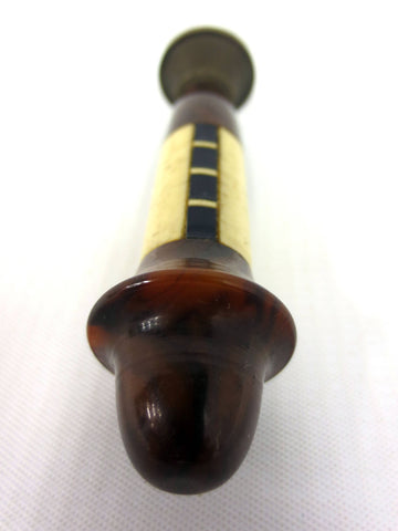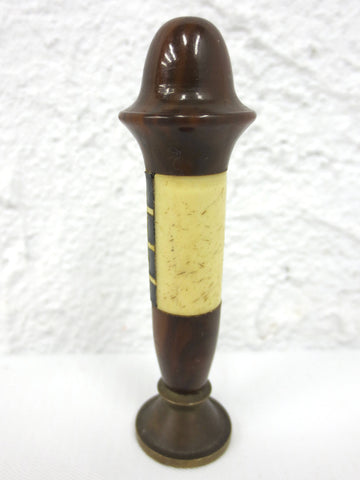 Unique Art Deco wax seal stamp from the 1920-30's, no monogram engraved (blank). Beautiful amber bakelite and resin patterns. Comfortable in the hand. Measures 2 3/4 inches tall and has a 11/16 inches diameter.