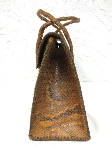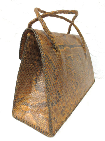 Vintage Genuine Python Snakeskin Purse Handbag, 3 Pockets, Handles