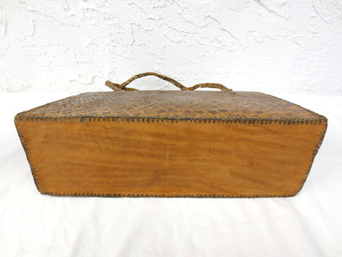 Genuine python snake skin, classy design and excellent condition. Vintage purse, no signature. Measures 14" at the widest, 8.5" tall and 5" deep. It has three very functional leather compartments. Purse is sturdy and stands on its own on a table.