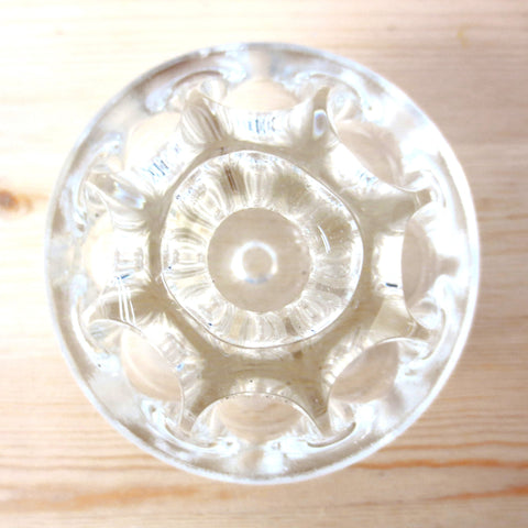 Vintage Mid Century 2 3/4" Dia. Solid Glass Flower Holder Frog 9 Holes, Hand Made