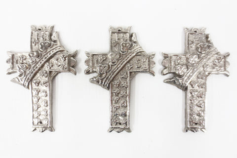 All 3 in perfect condition, in their original box, never used. New old stock (NOS) from 1940's funeral home Girard & Godin in Quebec. Beautifully ornate with a crown that wraps around the crucifix. High quality nickel plated finish. Measures 3 X 2 inches. Great for a rat rod, motorcycle or a cool Gothic decor.