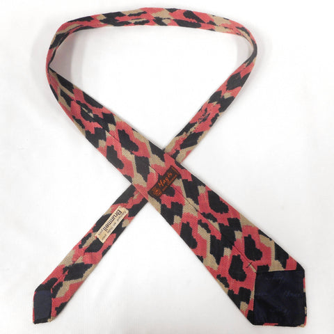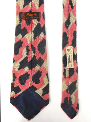 Excellent condition, professionally cleaned. Very cool pink, blue and white camouflage style. Signed Magis Seta Naturale, Italy. Wool and cotton. Measures 54 inches long and widest part is 4 inches.