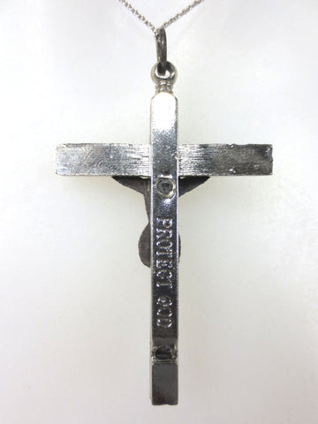 Vintage Priest's Crucifix Whistle Pendant 2.5", Bronze Inlay, Nickel plated, Exo
