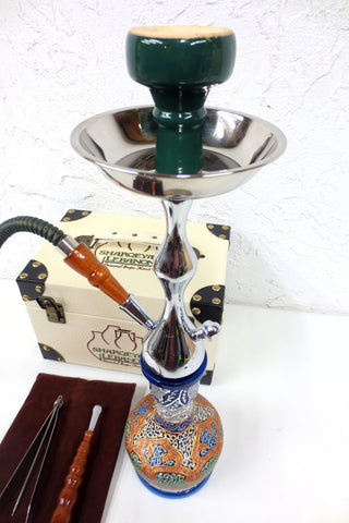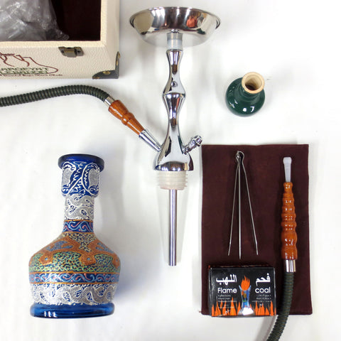 Shisha Nargile Hookah 18" Tobacco Water Pipe Vase Set, Luxury Sharqeyat Handmade Box